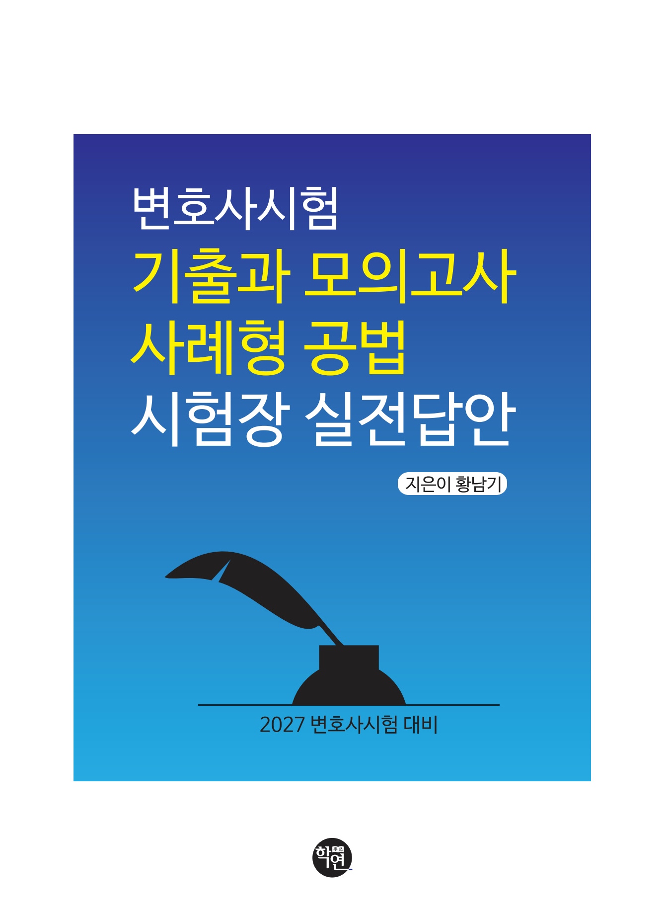 공법 문제는 헌법과 행정법이 결합된 문제가 대대수이다. 헌법과 행정법은 일관되게 기술하려면 한 저자가 답안을 작성하는 것이 좋다. 그리고 파트별로 공부하기보다는 전체 흐름으로 공부하는 것이 좋다. 헌법과 행정법을 따로 공부할 수밖에 없는 현실이다. 기본서도 따로 나오고 강의하는 사람도 헌법 교수, 행정법 교수가 나누어져 있기 때문에 수험생 입장에선 어쩔 수 없다. 그래서 헌법과 행정법을 하나의 기본서로 만들고 싶으나 이는 요원한 작업이다. 일단 사례형 문제라도 공법 통합형으로 만들 필요가 있었다. 본 교재는 한 사람이 직접 작성해 헌법과 행정법이 잘 이어진다는 장점이 있다. 기출문제는 가능한 시험 분량을 많이 초과하지 않은 범위에서 작성했고 모의고사는 채기표를 참조해서 더 풍부한 답안을 작성했다. 답안의 흐름을 통해 채기표의 답답함을 보완하려했다. 헌법과 행정법 공부를 어느 정도 공부한 수험생은 본 교재를 통해 공법의 전체적인 흐름을 보기에는 좋을 것 같다. 더 좋은 답안을 쓰기 위해선 본 교재도 하나의 예시적 답안에 불과할 것이다. 기본서를 공부하면서 다시 본 교재의 예시답안보다 나은 답안을 쓸 수 있도록 노력하는 계기가 되었으면 한다. 기본서 읽기, 기본서 목차 암기는 더 좋은 답안을 쓰기 위한 핵심적인 공부 과정이다. 이를 뛰어넘어 예시답안만 공부한 것을 추천하고 싶지 않다. 기출이나 모고 문제가 중요한 문제이나 출제자의 관점은 어느 지점에서는 서로 다르다. 따라서 기본서 공부 없이 사례집만 공부한 것은 사상누각일 뿐이다. 기본서가 집을 짓는 주춧돌과 서까래가 구조라면 사례집은 색칠과 장식이다. 색칠과 장식으로 집을 지으려는 어리석음을 반복해서는 안 된다. 교과서를 통해 해당 과목에 뼈대를 본 사례집이 더 보기 좋은 장식을 하는 데는 다소 도움이 될 줄 믿는다. 공부할 양이 많은 것이 법학전문대학원생과 변호사준비생들의 고민일 것이다. 이러한 고민은 정면 돌파하는 것이 오히려 빠른 걸음이다. 다만 두꺼운 교재를 어떻게 빠르게 정확하게 볼 수 있느냐의 문제이다. 이 문제를 해결하기 위한 부단한 노력과 좋은 동료와 선생이 필요할 수는 있다. 수십 권의 책이 산 같이 쌓여 있음을 즐거움으로 알고 이를 사안에 맞게 필요한 정보를 찾고 정리하고 검토할 능력은 법조인에 필요불가결하다. 젊은 시절에 이러한 능력은 가난한 시간과의 싸움, 그리고 지치지 않은 훈련을 통해 형성된다. 더 훌륭한 법조인이 되기 위한 피할 수 없는 길이라 생각하고 즐기고 행복해야 한다. 본서가 이러한 과정에서 미력한 동반자가 되기를 바란다. 2026. 3. 19. 황남기